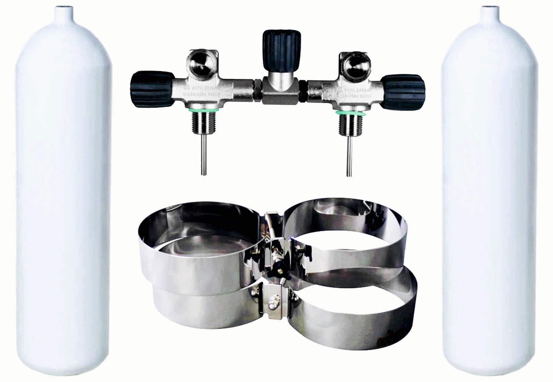BTS 10 Litre 232 Bar DIN Steel Cylinder Twin Set with Isolation Manifold & Bands S16116658