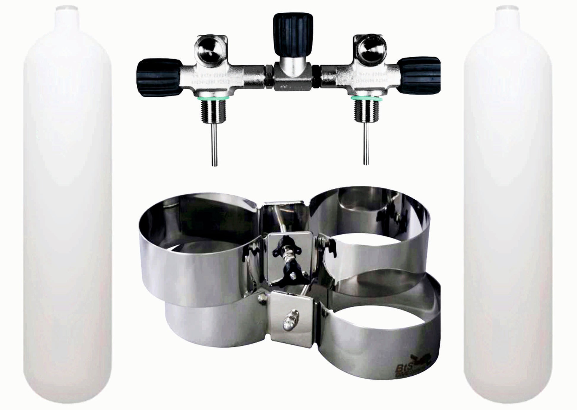 BTS 7 Litre 300 Bar DIN Steel Cylinder Twin Set with Isolation Manifold & Wide Bands S16116691