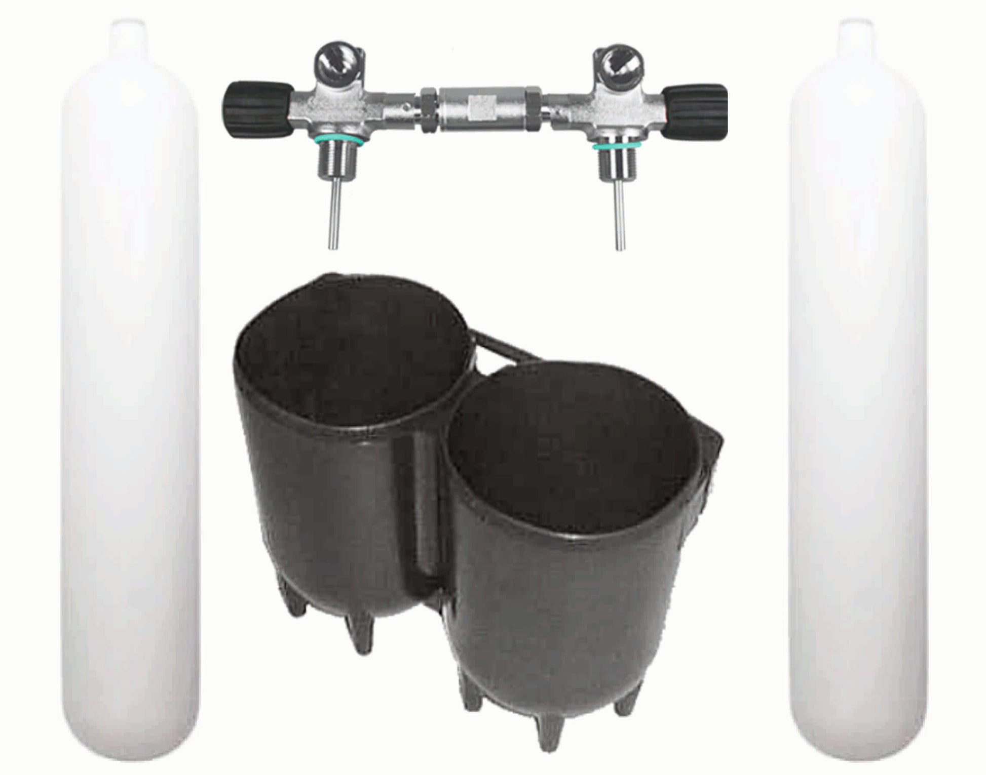 BTS 8.5 Litre 232 Bar DIN Steel Cylinder Twin Set with Boot & None Isolating Manifold S16816679