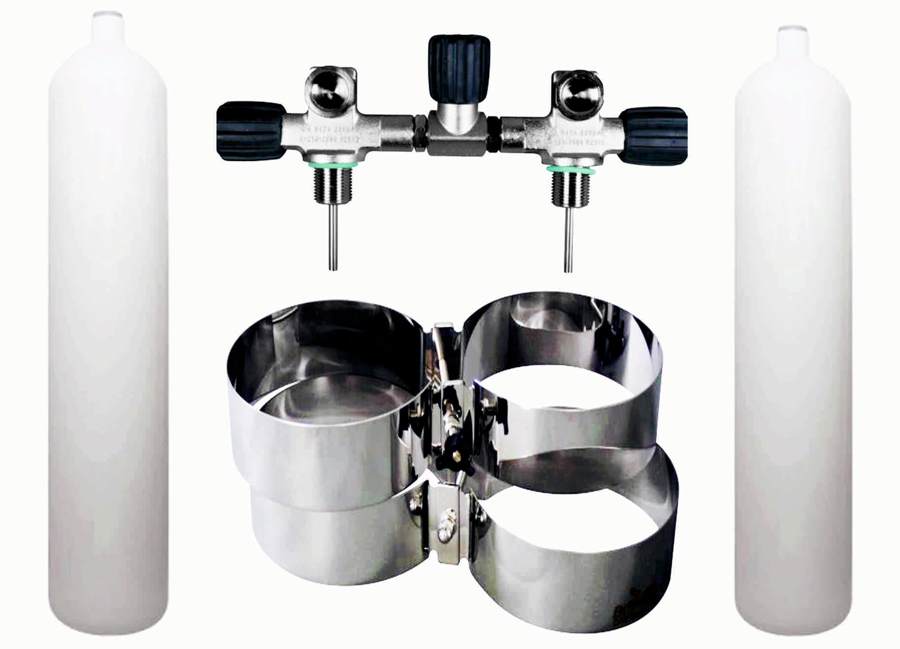 BTS 8.5 Litre 232 Bar M26 Flat Bottom Steel Cylinder Twin Set with Isolation Manifold & Wide Bands S16816699