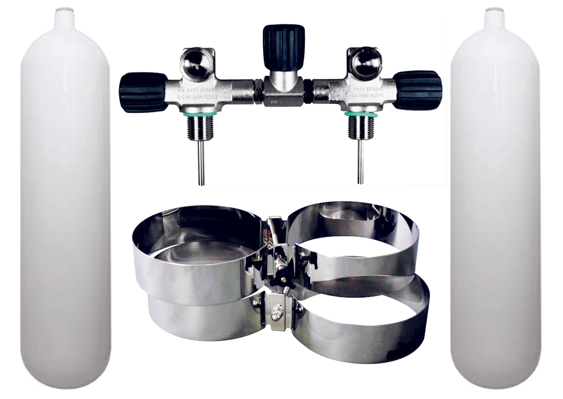 BTS Standard 12 Litre 232 Bar DIN Steel Cylinder Twin Set with Isolation Manifold & Bands S16116659