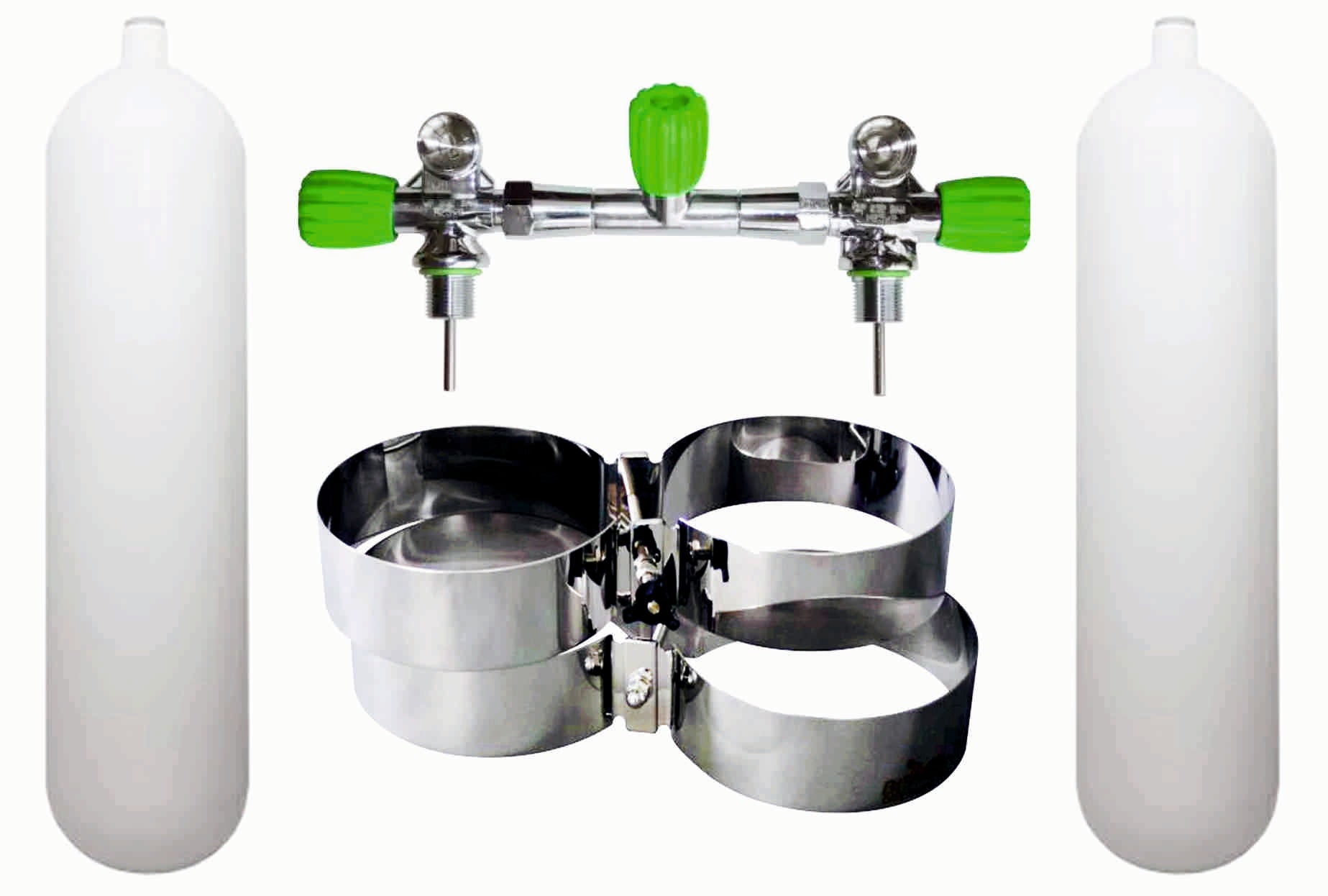 BTS Standard 12 Litre 232 Bar M26 Steel Cylinder Twin Set with Isolation Manifold & Bands S16816648