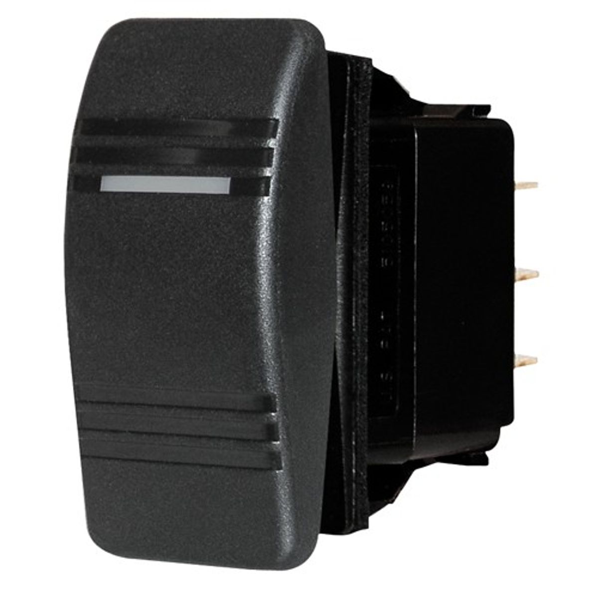 This Blue Sea 8292 Contura switch SPST in black with Off/Sprung-On function is specially manufactured for mounting in Blue Sea Systems' waterproof panels. Common applications for this rocker switch include horn or windscreen wipers. Use of standard Contura switches will not maintain the waterproof integrity of these panels.
