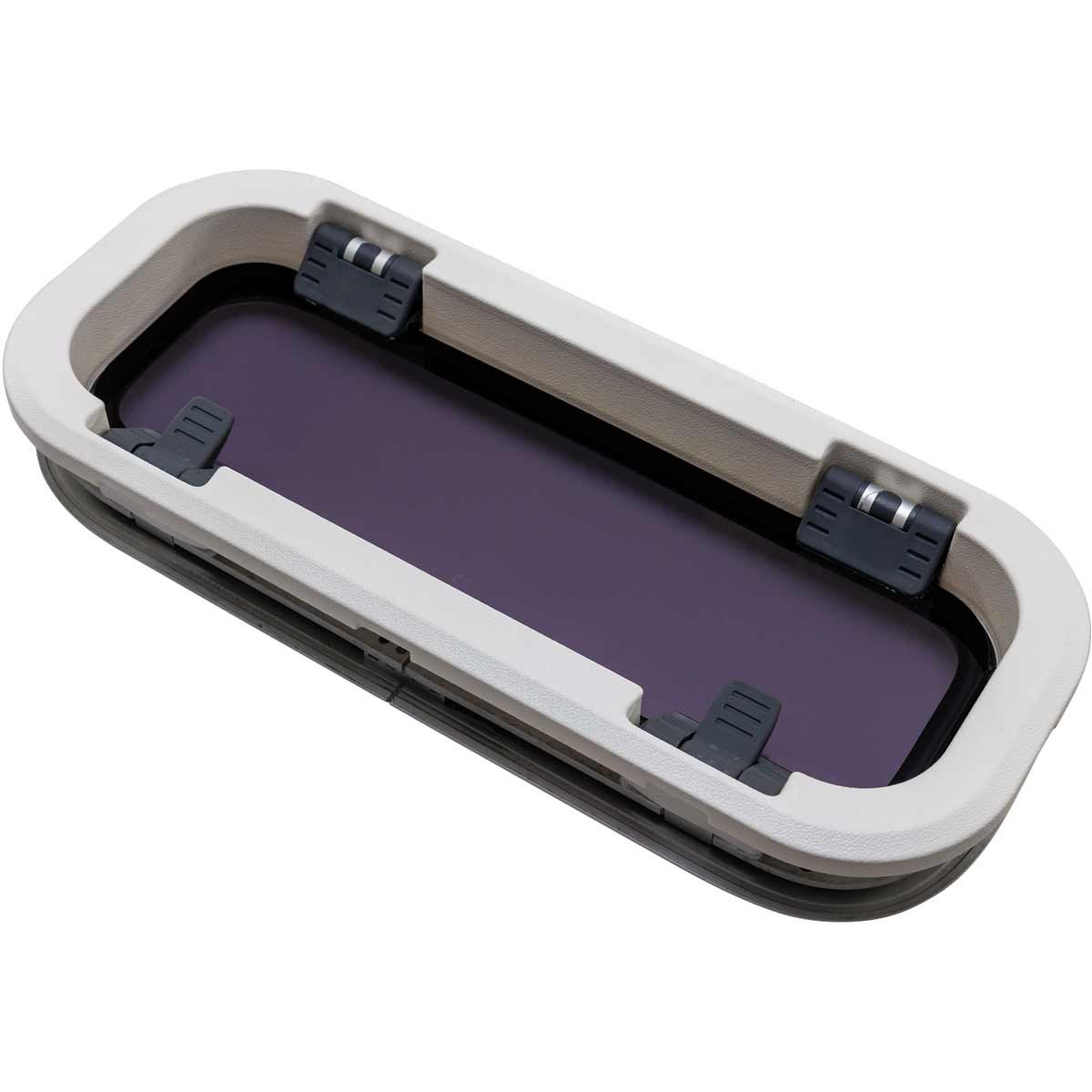 Lewmar 393220500 New Standard ST2 portlight window with aluminium outer frame and ivory inside frame. 425mm x 176mm