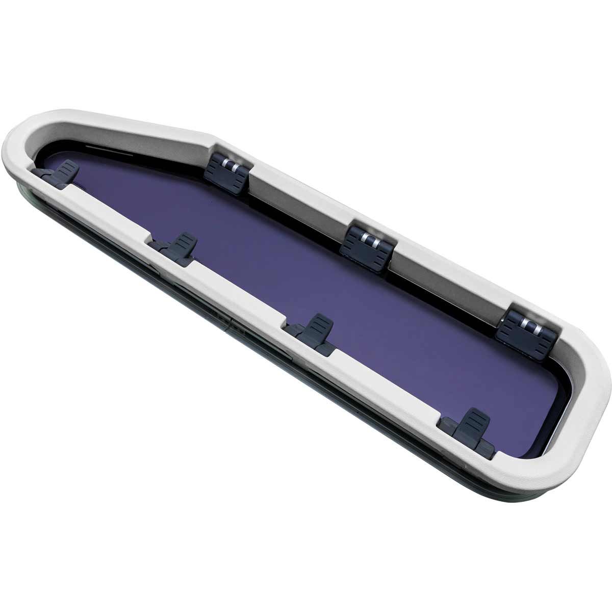 Lewmar 393440500 New Standard ST44R portlight window with aluminium outer frame and ivory inside frame. 708mm x 195mm
