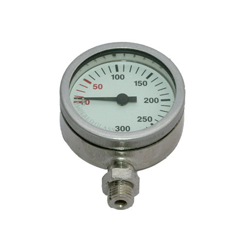 High-quality brass pressure gauge, suitable especially for main tanks and stages. Synoptic dial scale upto 300 bar. Comes with swivel with viton o-rings.