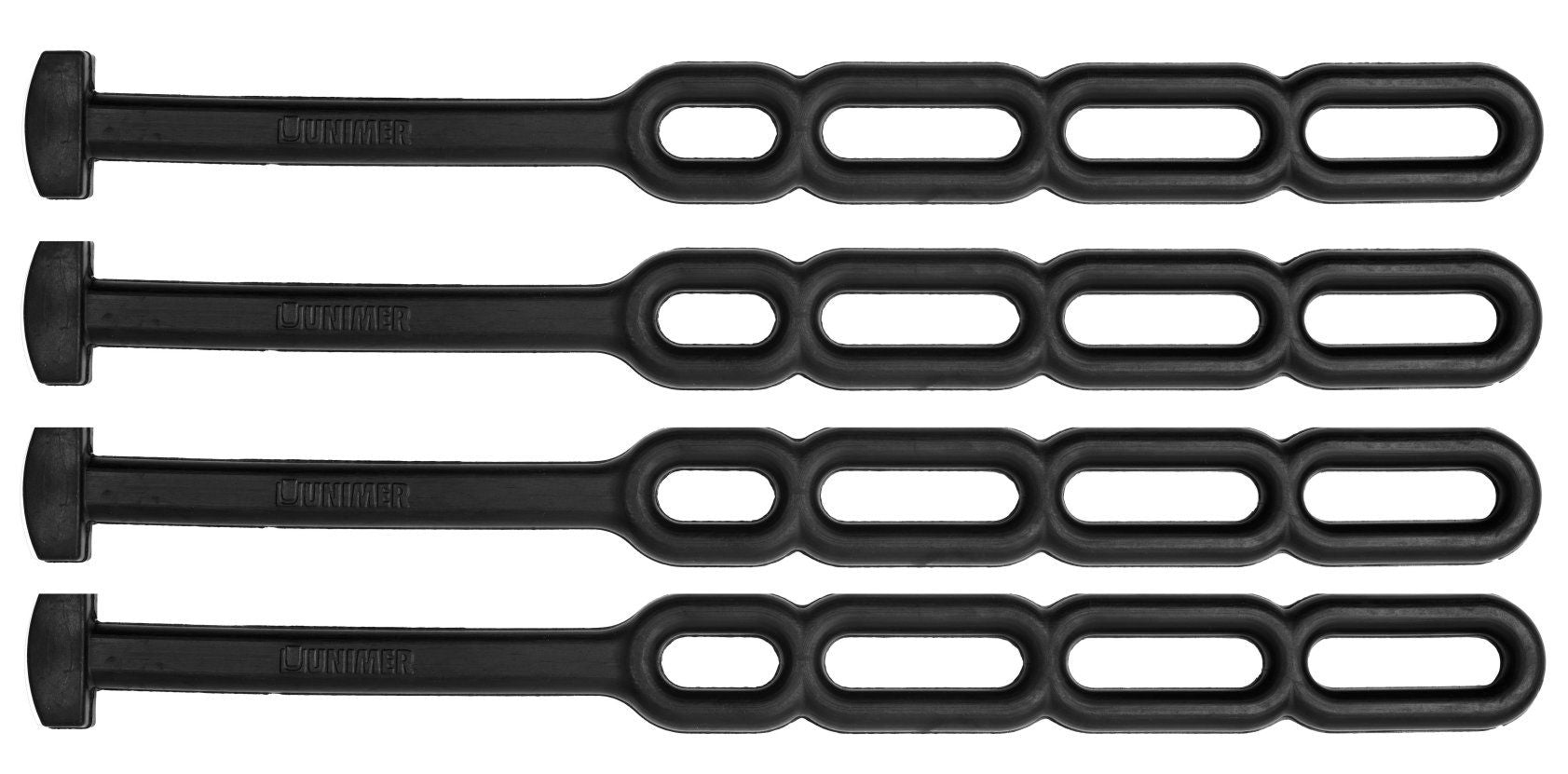 Pressure formed rubber tensioner in EPDM. The 'T' end should fitted into the eyelets of the cover and back through the small opening of the tensioner for locking..