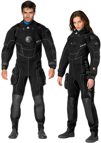 The D10 PRO ISS drysuit is equipped with a metal dryzipper with zipper cover, DuPont™ Kevlar® Fiber reinforced and angled boot, rubber kneepads, SI TECH Neck Tite System with Warm Neck, SI TECH QCS Oval Ring System with Warm Cuffs, Silicone seals for neck and wrists, expandable zippered neoprene Power pockets and SI TECH valves. D10 PRO ISS has anatomical fit, embossed panels and anti-slip PU reinforced shoulders and anti-slip treatment on seat that provides a non-slip grip and abrasion protection.